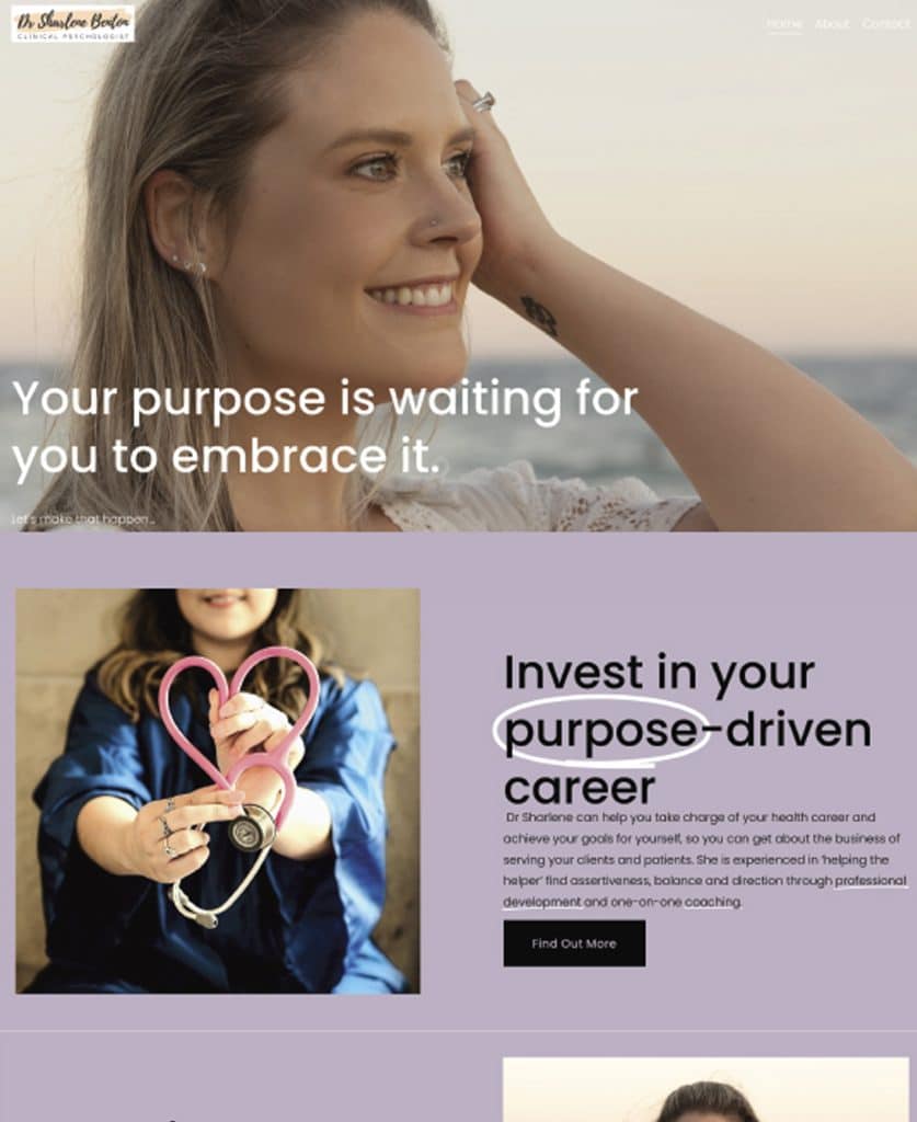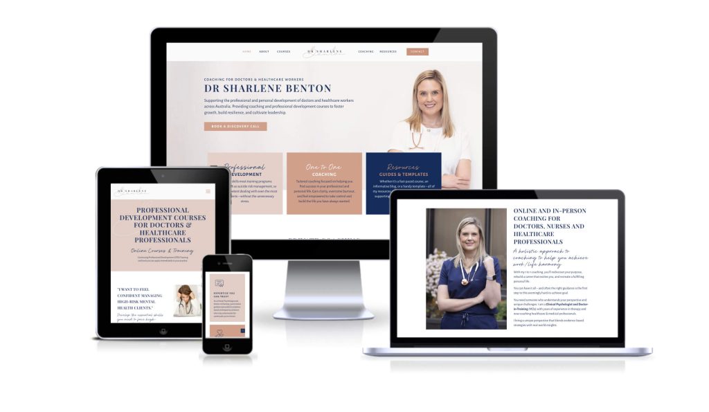 The services provided by DR Sharlene were aimed at busy healthcare professionals and medical practice owners as well as larger medical organisations. So it was important to convey her expertise and credibility, but also be approachable and express her holistic and personalised approach to coaching. Our goal was to craft a professional yet inviting visual identity and website that would resonate with both healthcare professionals and organisations at all levels.